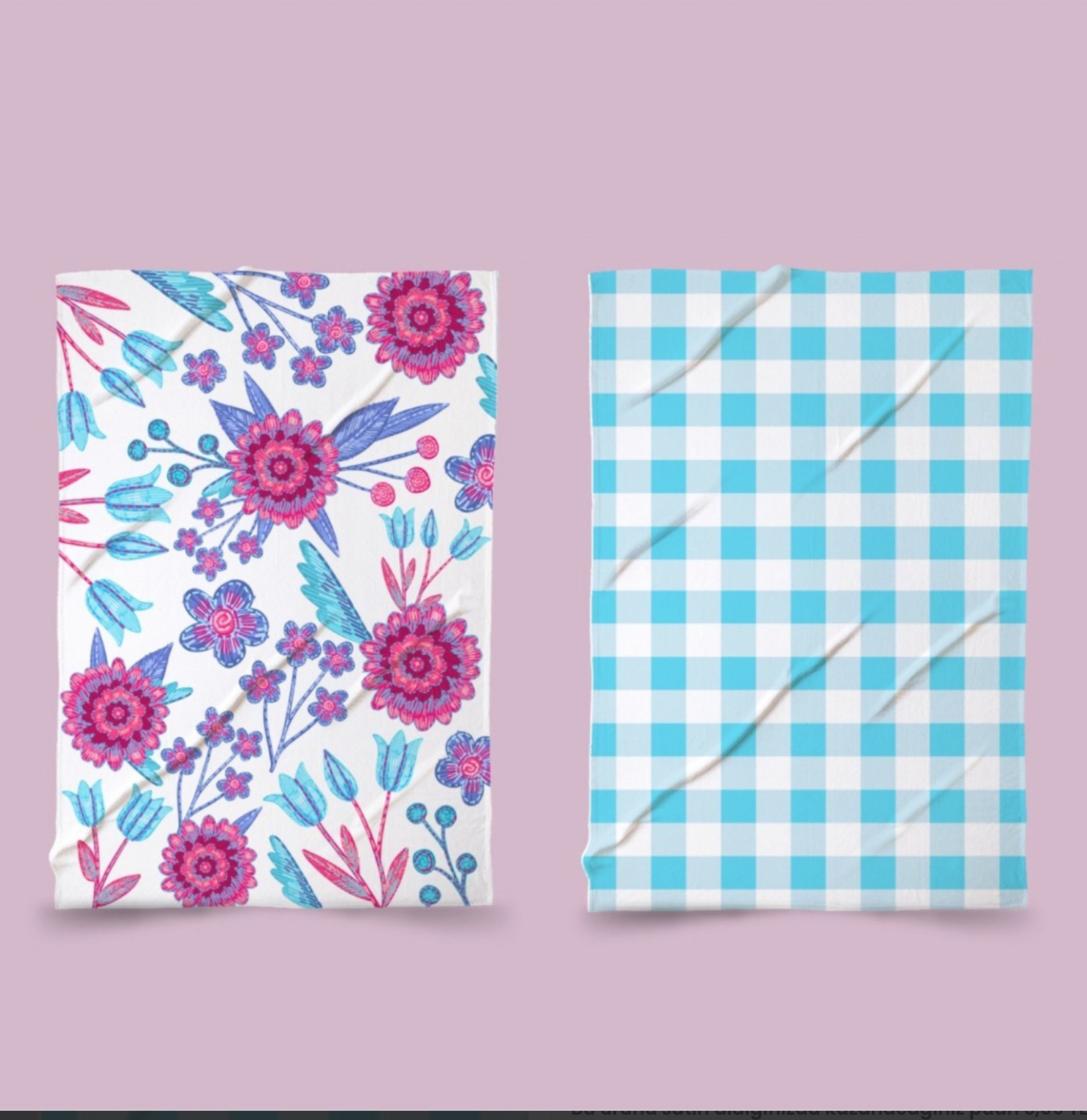 Towels Set Of 2 Pink Blue Floral Blue Checkered Print Etsy